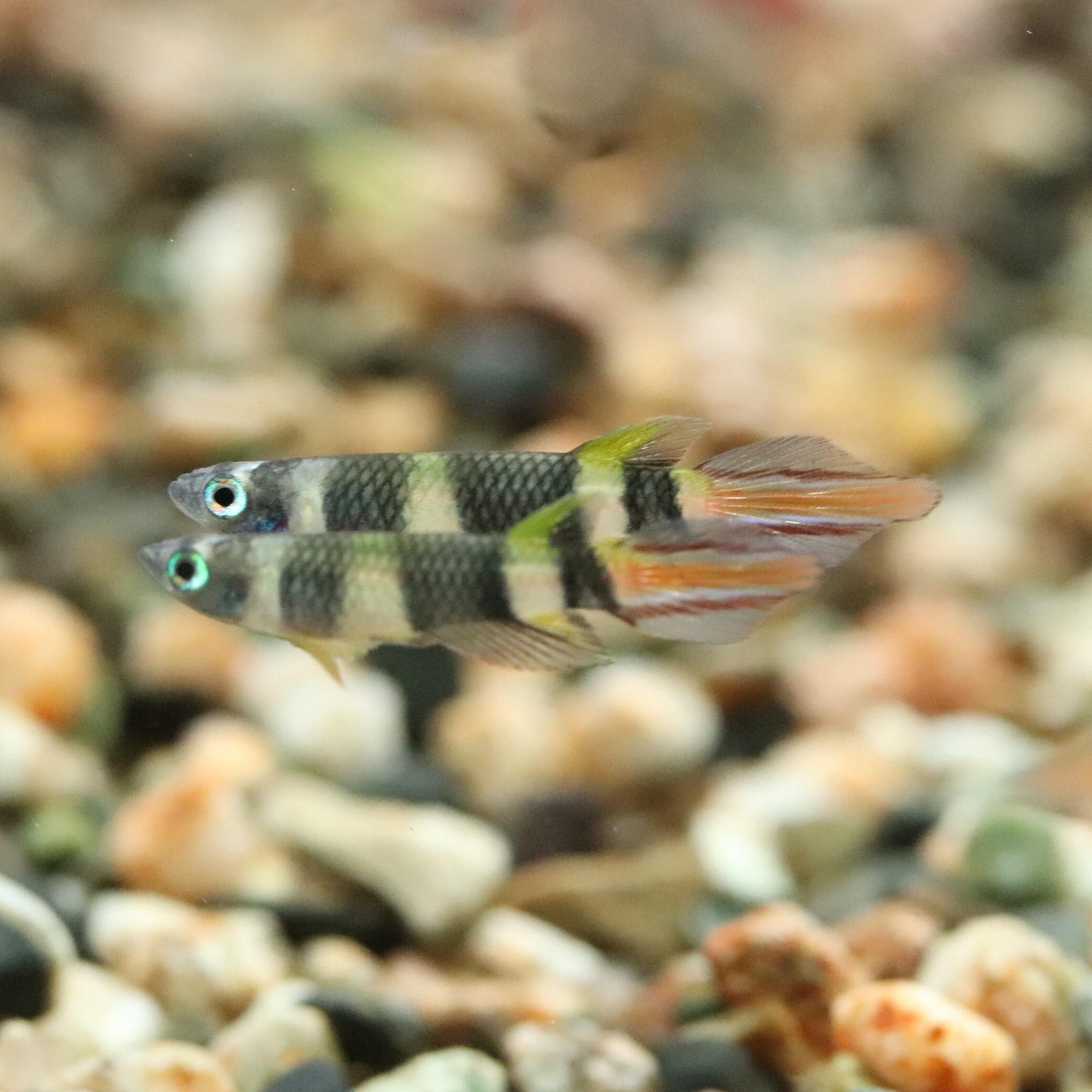 クラウンキリーは、その独特の美しい体色と優雅な泳ぎが魅力の小型魚です。特に、しっかりとした発色を持つオスは、見る人を惹きつける存在感を放っています。水草や流木とともにレイアウトすることで、より一層その美しさを引き立てることができるでしょう。