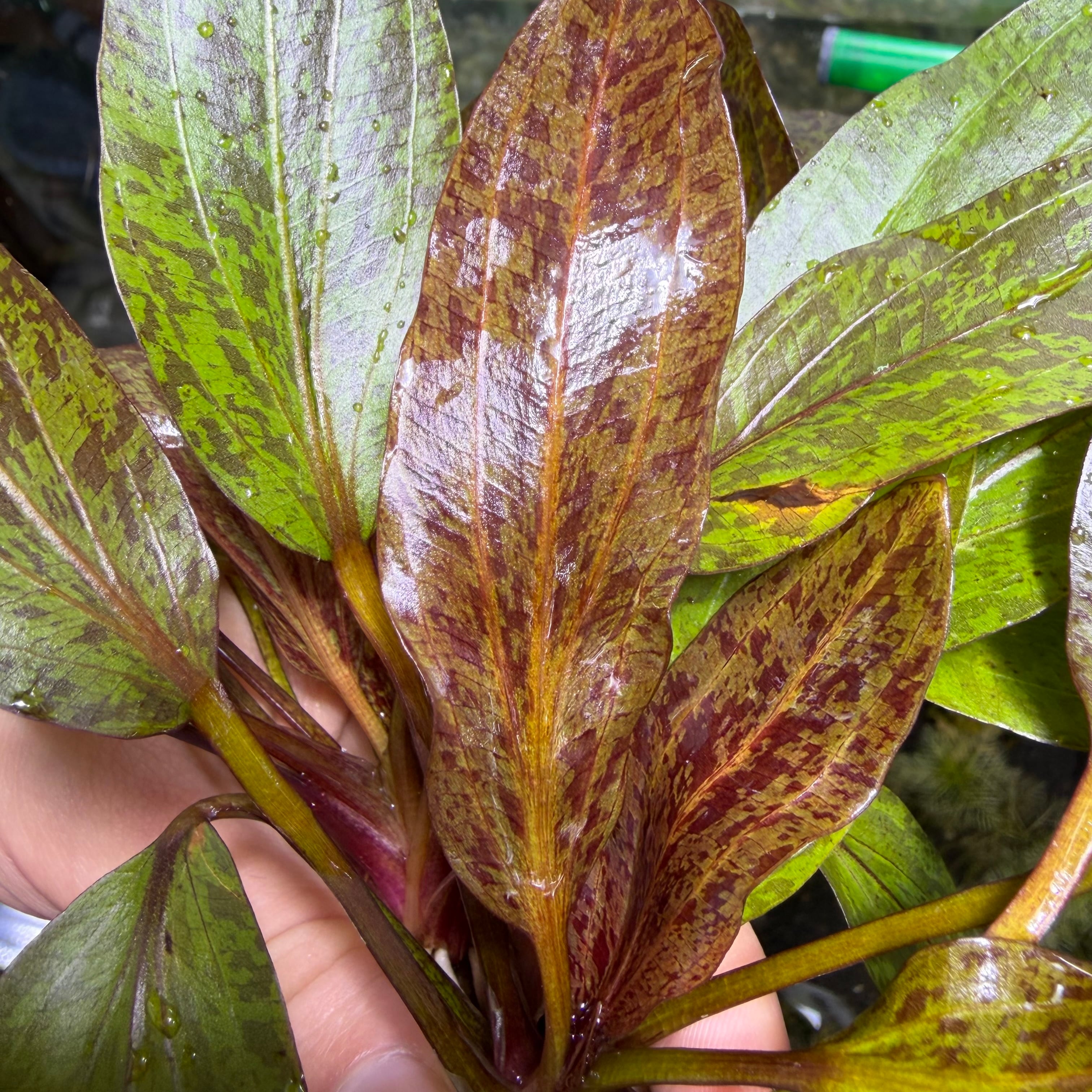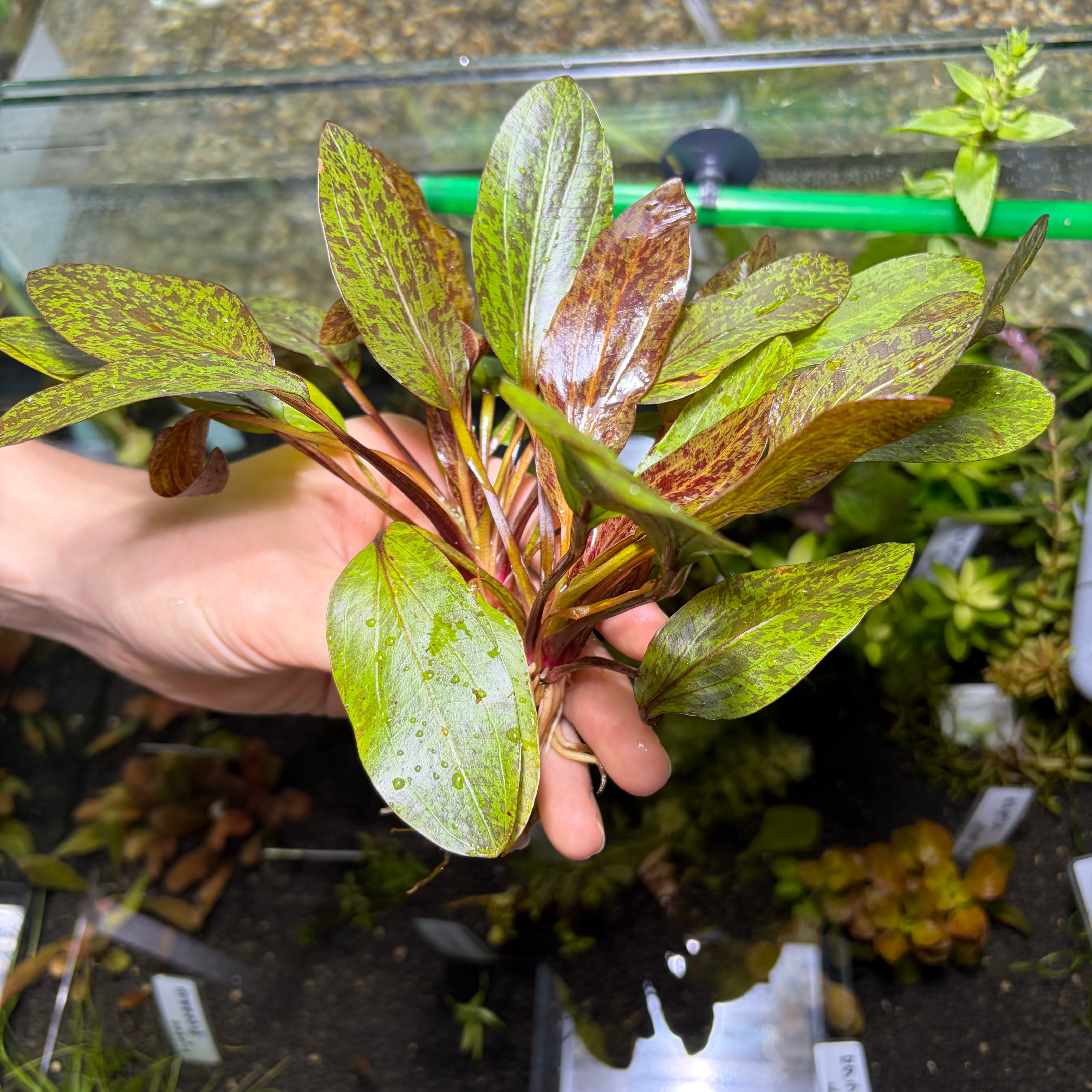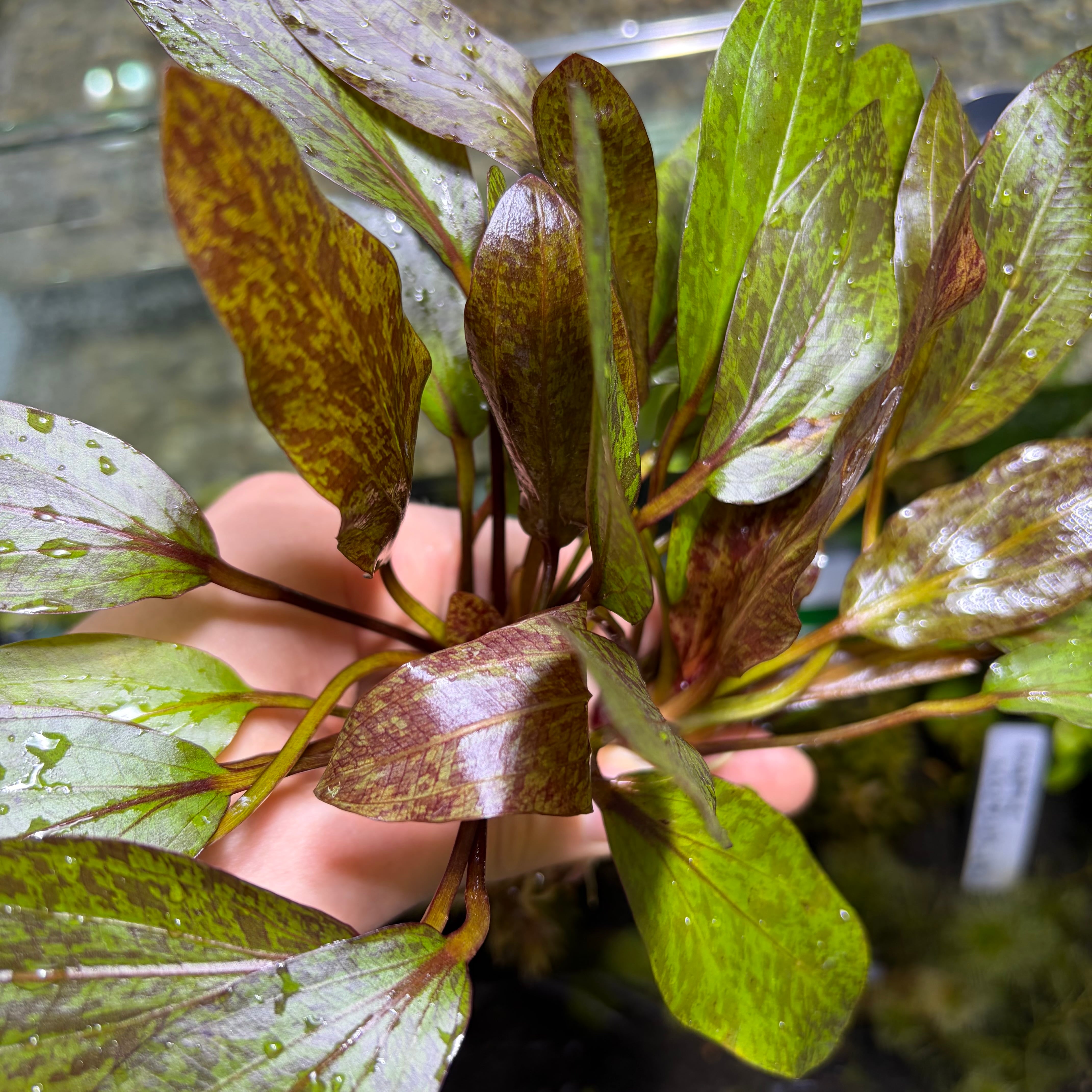 独特の葉色は水槽内でしっかりと目を引き、落ち着いた中にも華やかさを加えてくれる一株です。